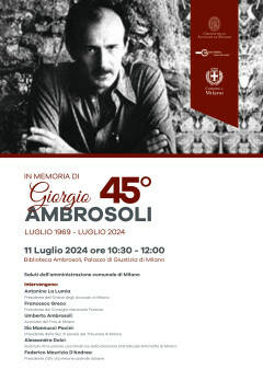 Martedì 09 Luglio 2024 La città di Milano ricorda l’avvocato Giorgio Ambrosoli Giovedì 11 luglio si terranno tre momenti per rinnovare il ricordo e onorare la memoria di Ambrosoli