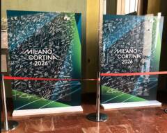Trasferiti dal Villaggio olimpico, i due pannelli riportano anche le firme del Presidente della Repubblica Sergio Mattarella e della presidente del CIO Kirsty Coventry