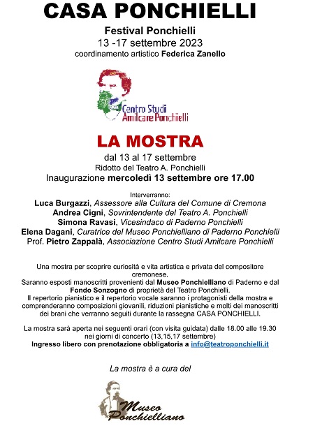 NAUGURAZIONE MOSTRA DEDICATA AD AMILCARE PONCHIELLI IL 13 SETTEMBRE ORE 17.00
