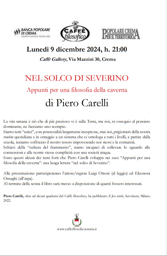 NEL SOLCO DI SEVERINO Appunti per una filosofia della caverna di Piero Carelli