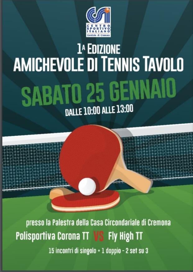 In data 25/01/2025, presso la palestra della Casa Circondariale di Cremona, si svolgerà la prima amichevole del torneo di tennis da tavolo organizzato dall’Associazione sportiva CSI.