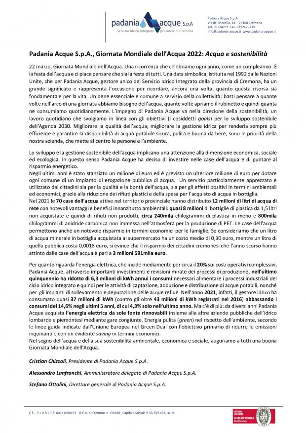 Padania Acque nella giornata internazionale ,acque e sostenibilita'