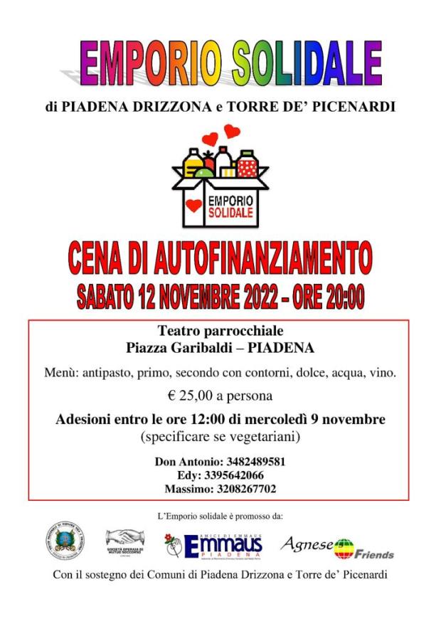 Piadena Cena Autofinanziamento per Emporio Solidale