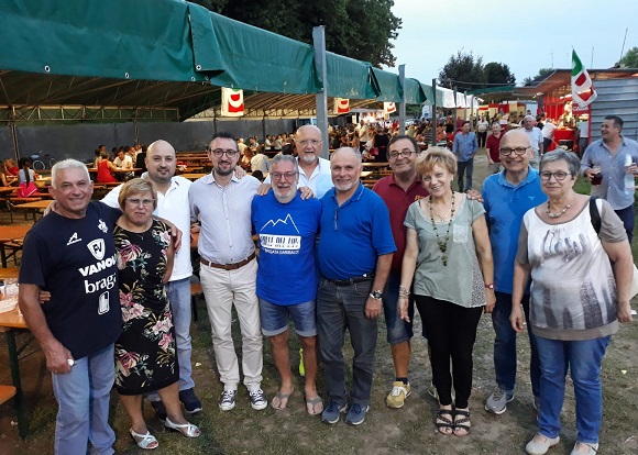 Nella foto il consigliere regionale Matteo Piloni insieme ad un gruppo di volontari alla Festa di Pessina Cremonese