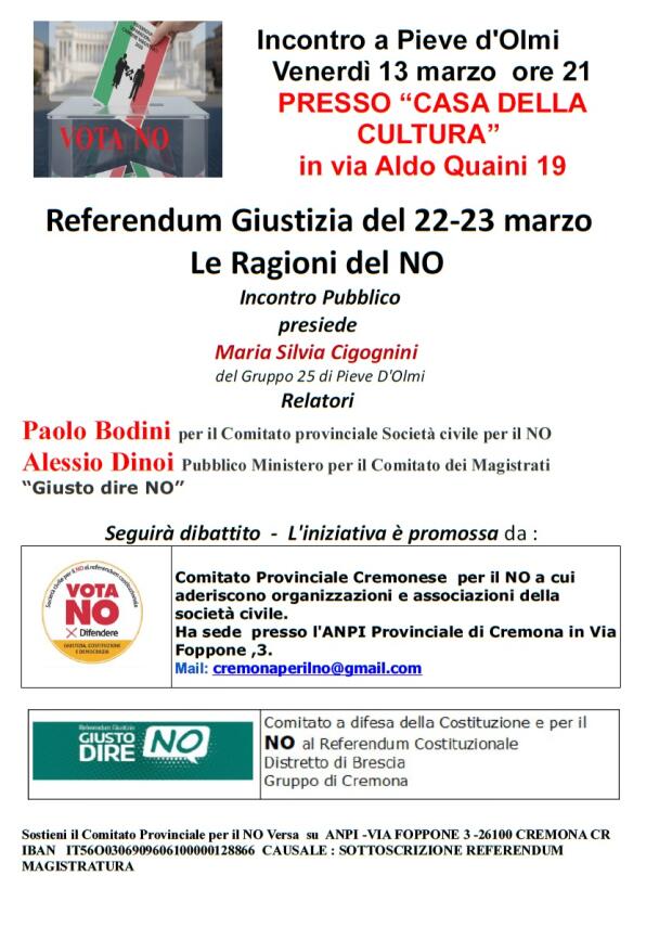Pieve d'Olmi Referendum Le ragioni del NO incontro del 13 marzo