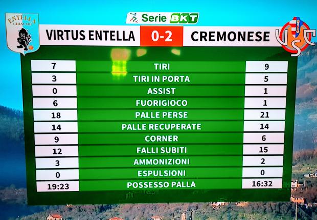 VIRTUS ENTELLA - CREMONESE 0-2 (0-0)
