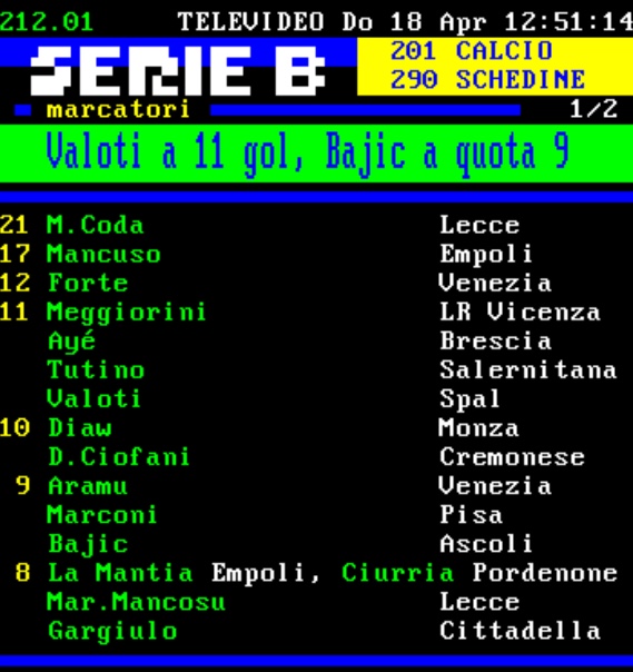 Per quanto riguarda la classifica marcatori al vertice resta tutto immutato, con Coda che resta in testa 21 reti, a 17 Mancuso dell'Empoli, mentre sul terzo gradino del podio si conferma Forte del Venezia con 12.