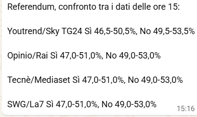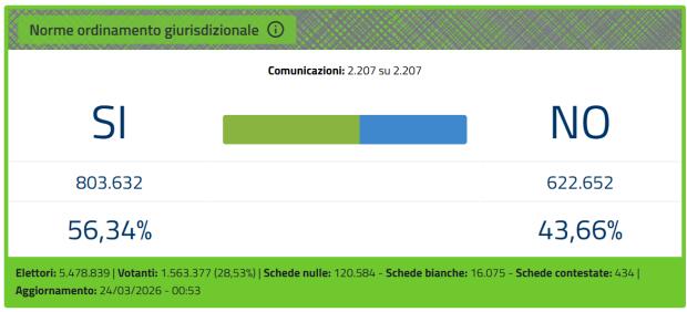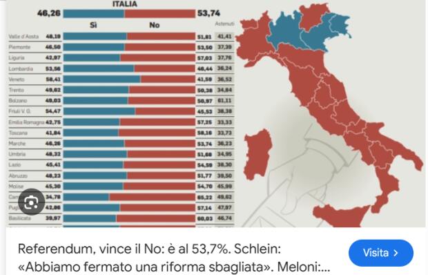 Referendum vincono i No con il 53,23 % pari a 15.083.988 di voti