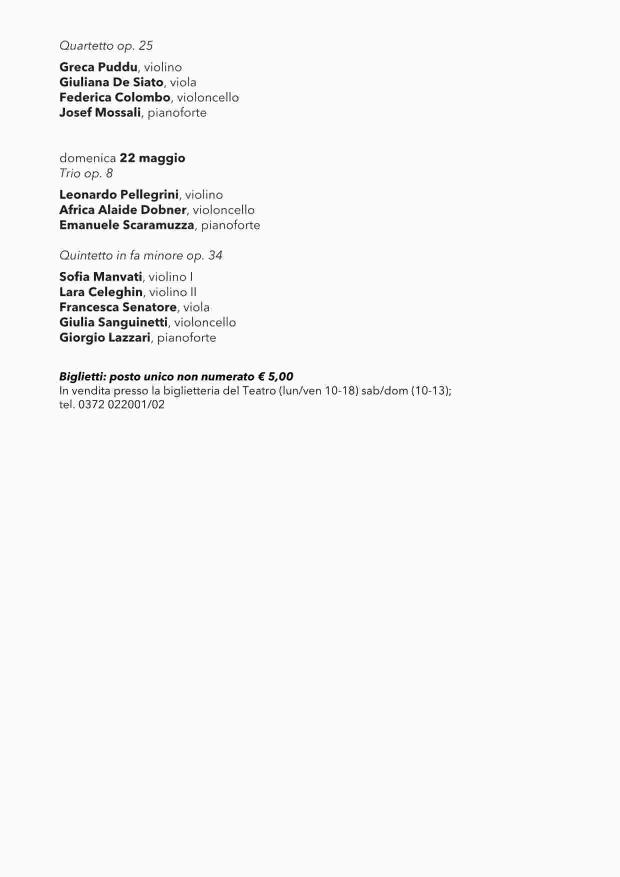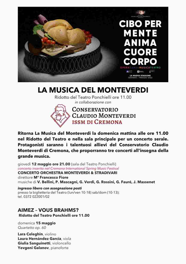 Protagonisti saranno i giovani musicisti del Conservatorio Claudio Monteverdi di Cremona, che proporranno tre concerti