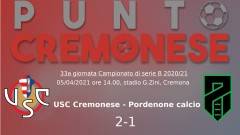 In svantaggio dopo un quarto d'ora i grigiorossi ribaltano la partita con un gran gol di Valeri e con la rete decisiva dell'ex Strizzolo. Salvezza più vicina.