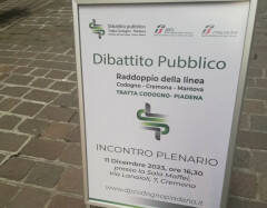 Mercoledì 13 Dicembre 2023 (CR) Raddoppio ferrovia Piadena-Cremona-Codogno | Osservazioni Stati Generali A.S. Lunedì pomeriggio in Sala Maffei a Cremona gli Stati generali Clima Ambiente Salute erano presenti con una propria delegazione all'avvio del dibattito