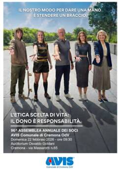 Domenica 22 febbraio 2026, alle ore 9:30 si terrà presso l'Auditorium Osvaldo Goldani di via Massarotti 65 a Cremona