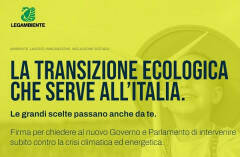 Sabato 08 Luglio 2023 Petizione Legambiente Onlus STOP alla Crisi Climatica: firma ora !! Per chiedere al nuovo Governo la Transizione Ecologica che serve davvero all’Italia