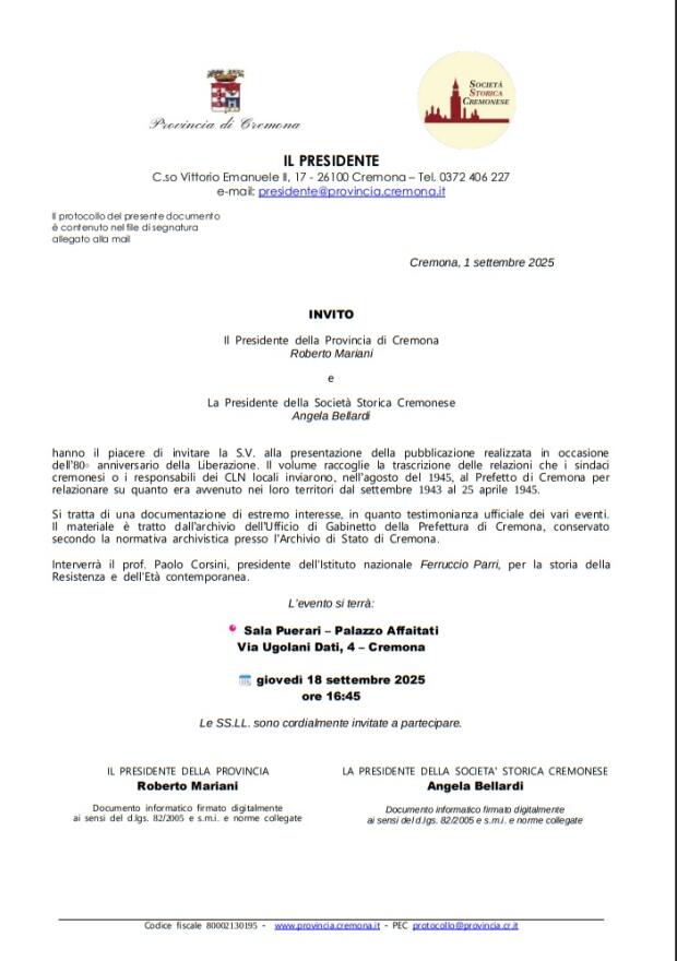 Interverrà il prof . Paolo Corsini, presidente dell'Istituto nazionale Ferruccio Parri, per la storia della Resistenza e dell'Età contemporanea