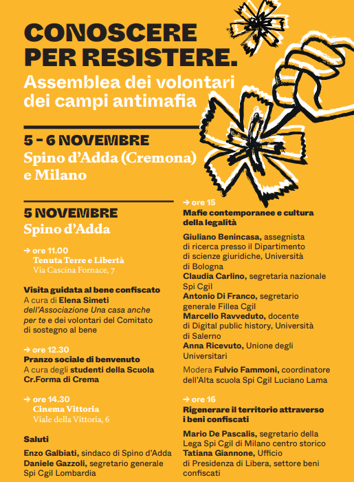 Assemblea dei volontari antimafia: 5-6 novembre a Spino d'Adda ed a Milano