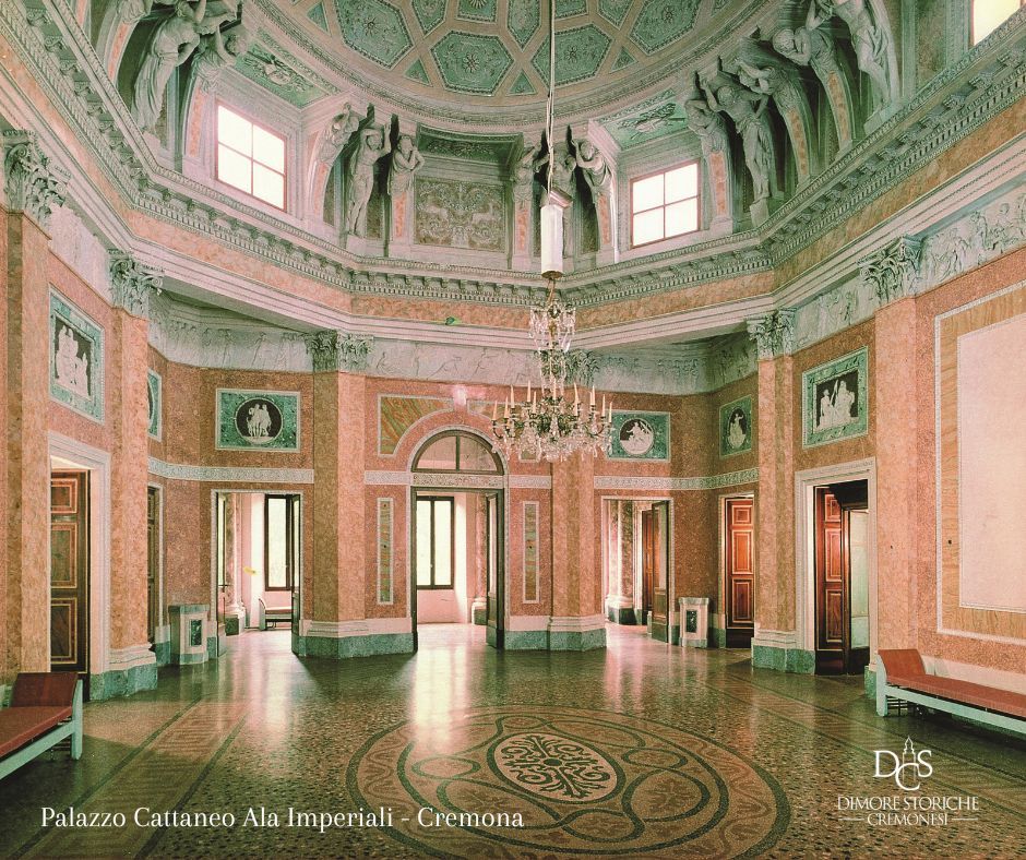 Cremona, Via Oscasali 3 Palazzo di origini cinquecentesche che fu dimora della famiglia Ariberti e dall’anno 1623 divenne oggetto di numerose trasformazioni architettoniche da parte dei marchesi Cattaneo; la semplice facciata protegge la sontuosità degli ambienti interni, frutto di uno dei più grandi progetti dell’architetto Faustino Rodi legati a dimore nobiliari cremonesi. Il cortile d’onore con l’elegante porticato conducono verso lo scalone monumentale, che dà accesso al piano nobile, vero cuore del palazzo. Tra le sale riccamente decorate spiccano il maestoso salone delle cariatidi con cupola ellittica, la galleria pompeiana, la sala di Diana, la sala degli specchi e la sala dell’albero.