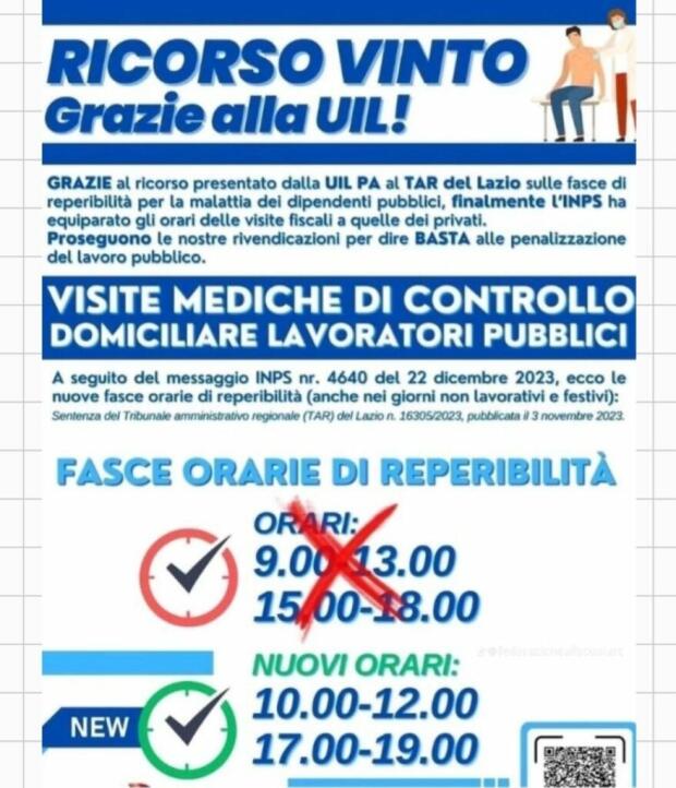 A seguito del ricorso promosso dalla nostra organizzazione sindacale, settore Pubblica Amministrazione, l’INPS ha provveduto ad adattare le fasce di reperibilità per tutti i dipendenti pubblici in malattia.