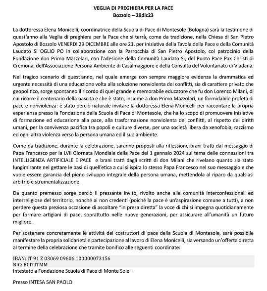 VEGLIA DI PREGHIERA PER LA PACE Bozzolo