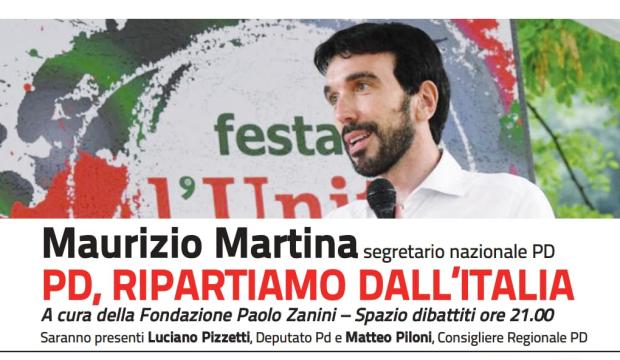 Il segretario nazionale Maurizio Martina a Crema Domenica 2 settembre ore 21